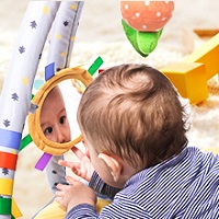 | Interesting tree hole shapes the ball pit, helping develop baby's gross motor skills. Having fun with your baby and enhance parent-child relationship during palying balls. | Easily hanging on arch or standing on mat. Let the baby discover and know himself in mirror, and promote the development of visual cognitive ability. | A pendant made of clouds, stars and elephants in series, they are beautiful and make a nice sounds, promoting baby's touch and hearing. |