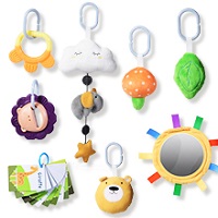 All-Round Early Development: 9 removable toys, fully meet the baby's growth needs of Visual, Hearing and Touch, Cognitive and Physical coordination. Baby safe mirror for self-discovery; Sound toy bear, lion's ears, green leaves, and cloud for hearing; Colorful balls and cloud for baby's touching, 2 soothing BPA free teether for teething, and the cards for graphics and colors cognitive.